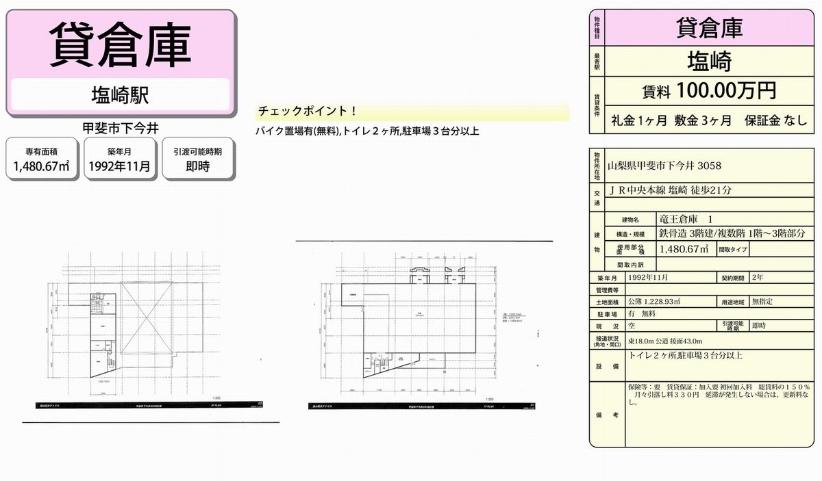 甲斐市下今井3058 (塩崎) 竜王倉庫1 詳細データ